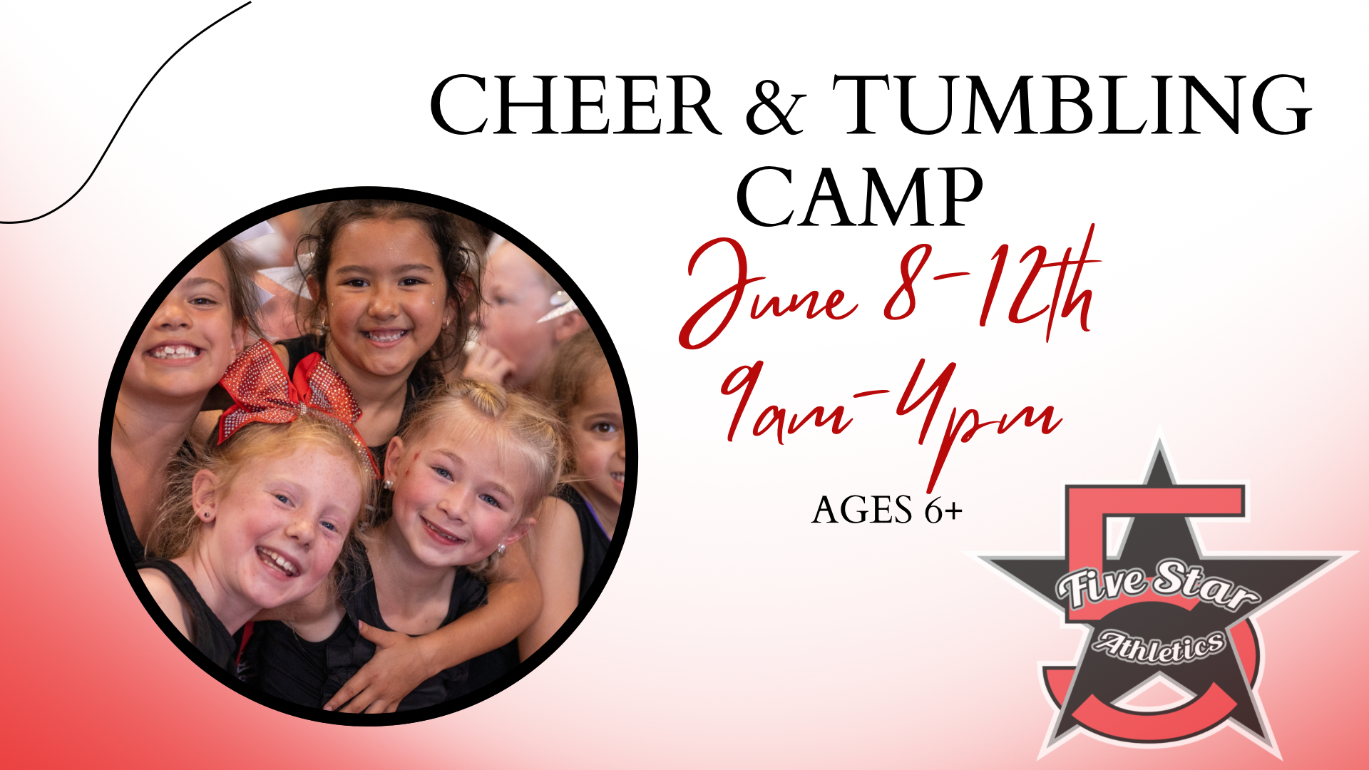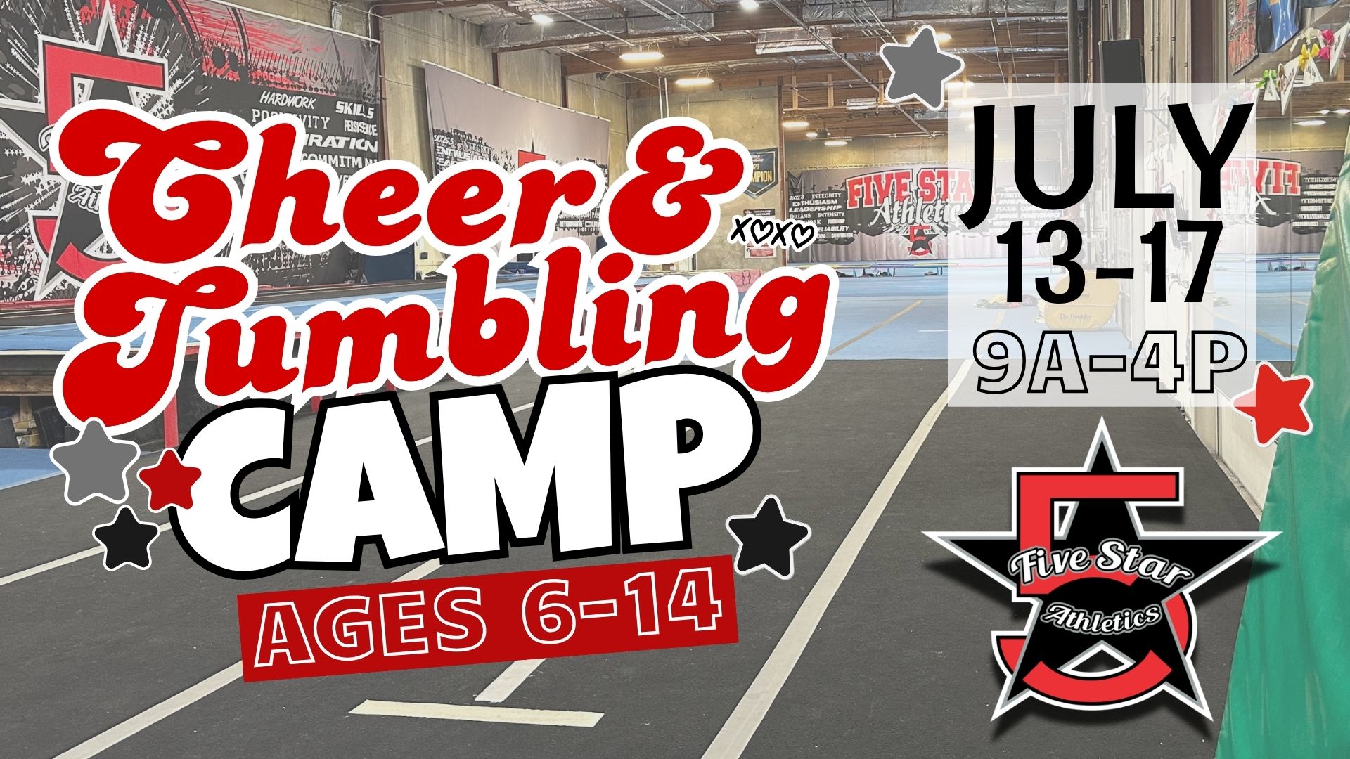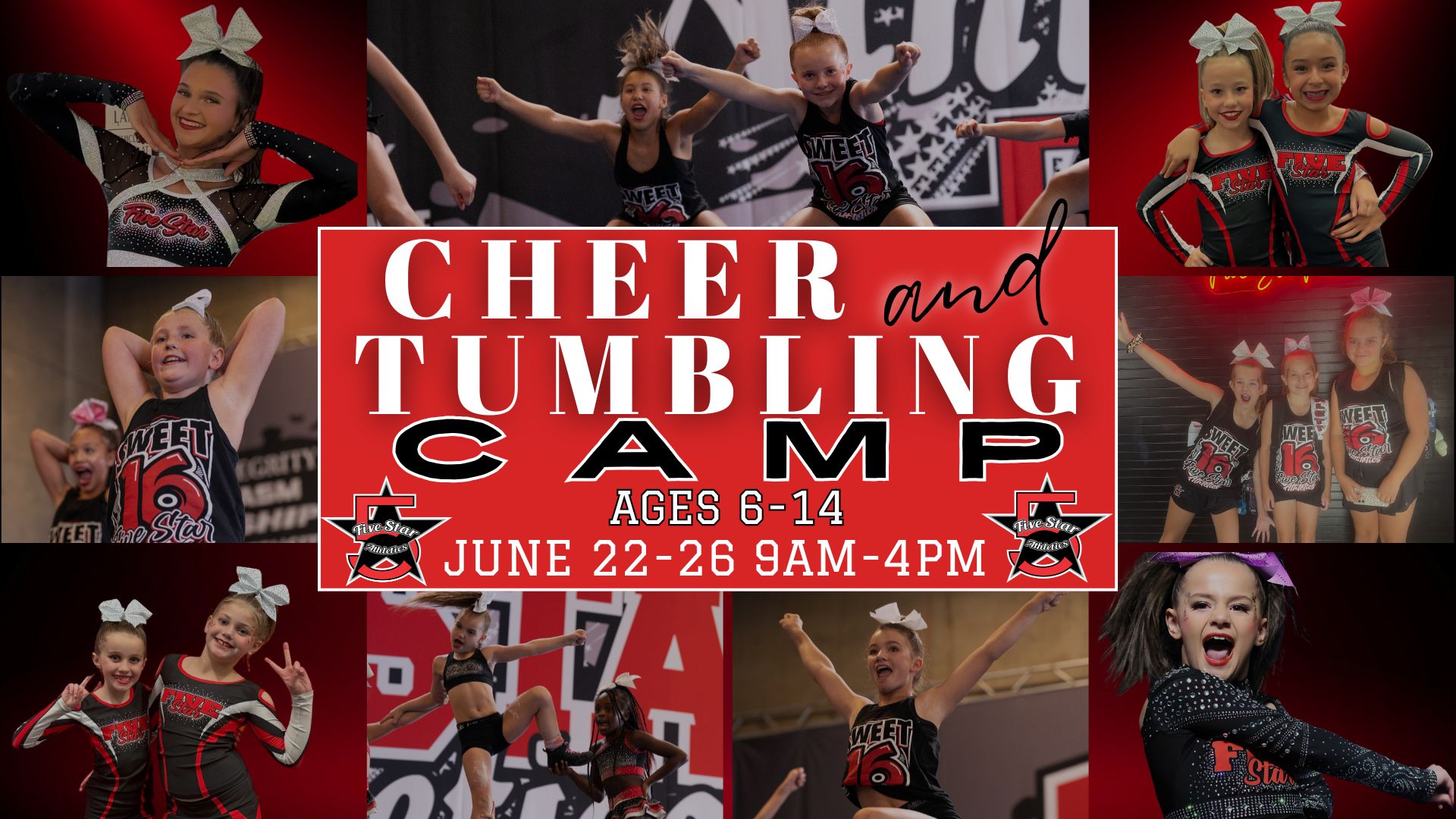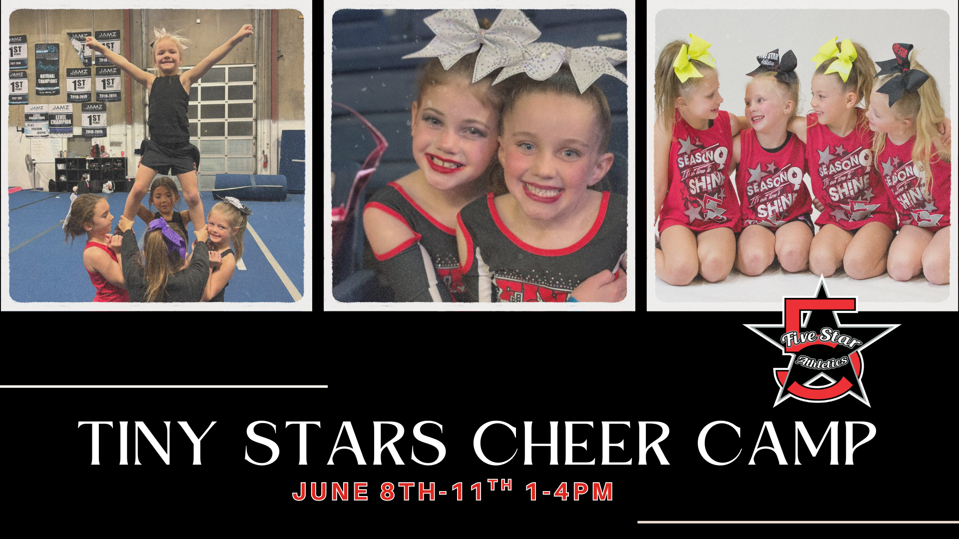 Tiny Stars Cheer Camp Ages 3–6 📅 June 8–11 | 🕐 1:00–4:00 PM Tiny Stars Cheer Camp is the perfect introduction to cheerleading for our youngest athletes! Designed especially for ages 3–6, this half-day camp focuses on movement, confidence, and FUN in a positive and encouraging environment. Throughout the week, campers will enjoy: - Basic...